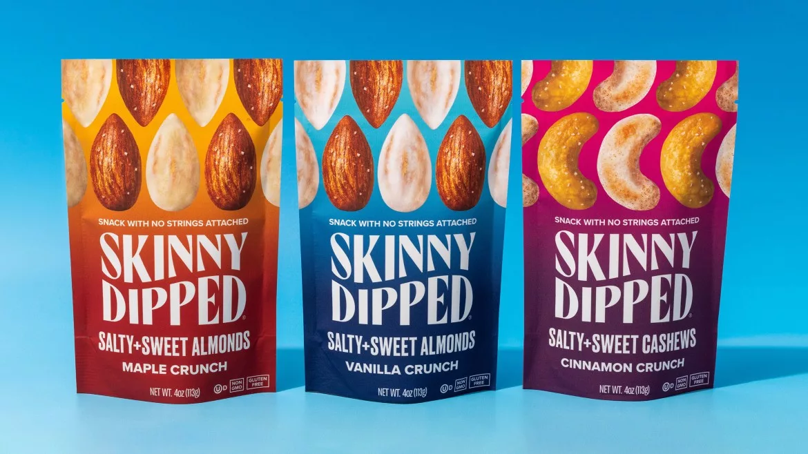 Available in three flavors – Vanilla Crunch Almonds, Maple Crunch Almonds and Cinnamon Crunch Cashews – SkinnyDipped's Salty + Sweet range is more savory than its prior products, but they retain the brand's signature sweetness.