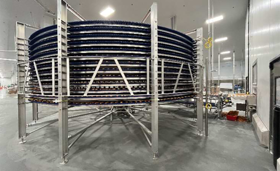 The honey buns then enter a proofer before heading to the walled-off fryer. The new fryer rooms also feature Oberlin circulating oil filtration systems that allow Carolina Foods to continuously fry honey buns and doughnuts longer without unplanned downtime to regulate free fatty acids. After frying, I.J. White spirals and RexFab conveyors allow the honey buns to cool before glaze is applied by an MG Newell waterfall glazer.