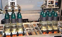 The Douglas TriVex fully automatic top load case packer erects, loads and seals cases. An opposing vacuum cup design ensures cases are erected properly. The packer operates at a rate of 15 cases/min. depending on case size.