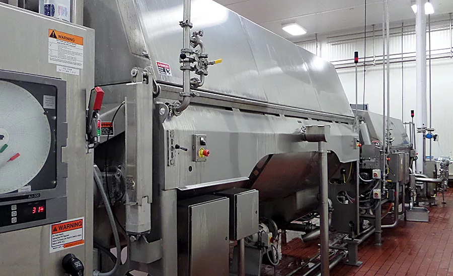 Today’s processing equipment is becoming more automated, faster, safer to operate, hygienically designed for food safety and more connected. Daniel Plante, JBT Corporation director of sales and marketing—North America, points out some refinements. “Automation inherently limits human interaction, therefore increasing safety within the plant. JBT believes in hygiene by design, with features such as sloping surfaces, open-channel support structures, limiting [the use of] capped rails and reducing niches.” For instance, the GYRoCOMPACT self-stacking belt spiral freezer has an architecture that helps eliminate nearly 90 percent of the support structures in a typical structurally supported system, making the oven easier to clean.