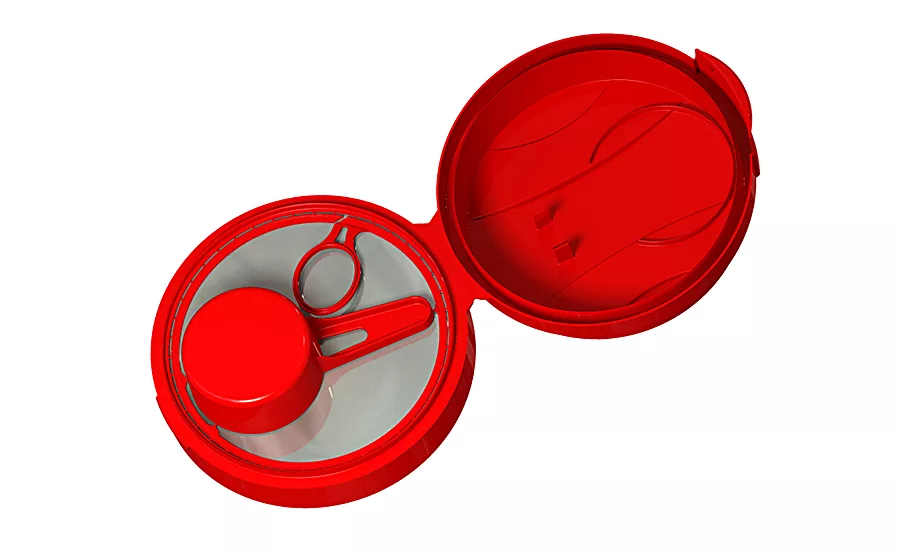 The Aptar 120mm flip top closure with BAP technology has an integrated measuring scoop that does not end up at the bottom of a container. Source: AptarGroup, Inc.