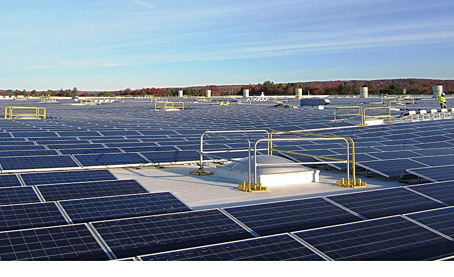 BJ’s Uxbridge, MA distribution center has solar panels mounted to its roof to generate power for facility usage. Source: BJ’s.