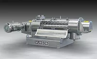 The Vibra Screw continuous blender combines a rotating paddle and material fluidization to blend dry solids. Controlled vibration of the mixing trough fluidizes ingredients on entry, where a cut-and-fold mixing rotor provides agitation. Materials flow through the blender via gravity. It is available in 3 modes with rates up to 1,200 cu. ft./hr.