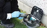 Placed around the exterior of a facility, rodent bait stations can help detect rodent activity. Source: Orkin.