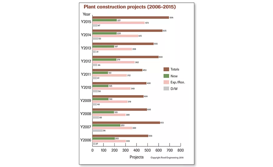 Source: Food Engineering’s 2015 Plant Construction Survey.
