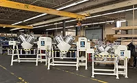 Ross 50-cu.-ft. V-cone tumble blenders mix products with bulk densities up to 150 lb./cu. ft. Free-flowing solids are blended as the cone rotates, while a high-speed intensifier bar breaks up lumps and agglomerates, and introduces minor liquid ingredients to the batch. Finished product is discharged through a 10-in. dust-tight butterfly valve. All the product contact parts are made from 316 stainless steel polished to a 150-grit finish. A variety of options are available, such as vacuum capability, a heating/cooling jacket, explosion-proof motor and PLC controls.