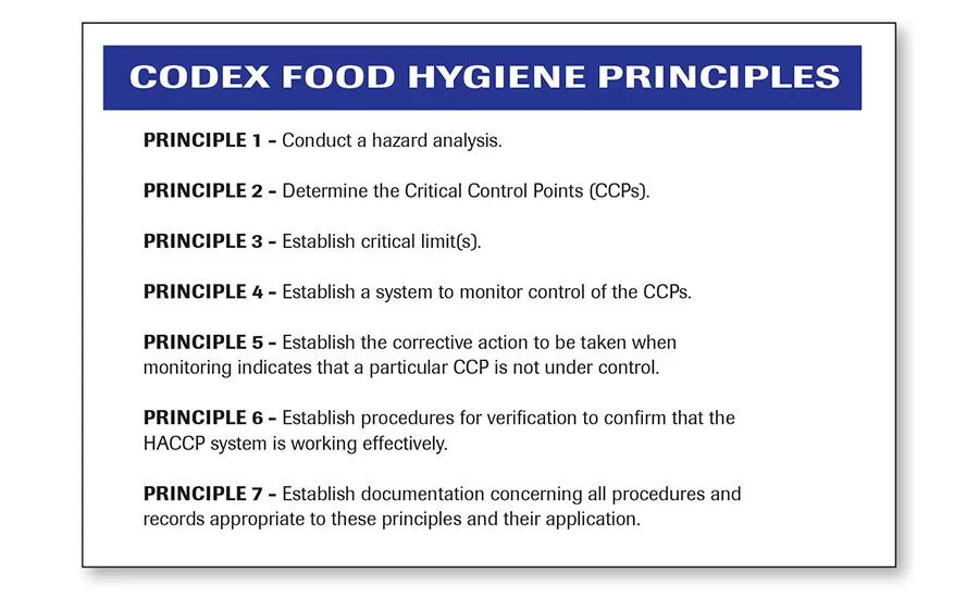 The seven principles published in 1997 harmonized the NACMCF and the Codex Committee on Food Hygiene.