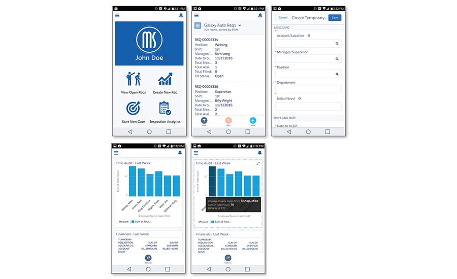 MS Companies is a staffing company that coordinates with potential temp employees via an app and alerts them of local jobs right on their cell phones. Employers can also use their cell phones to quickly and easily request temp workers. Source: MS Companies.