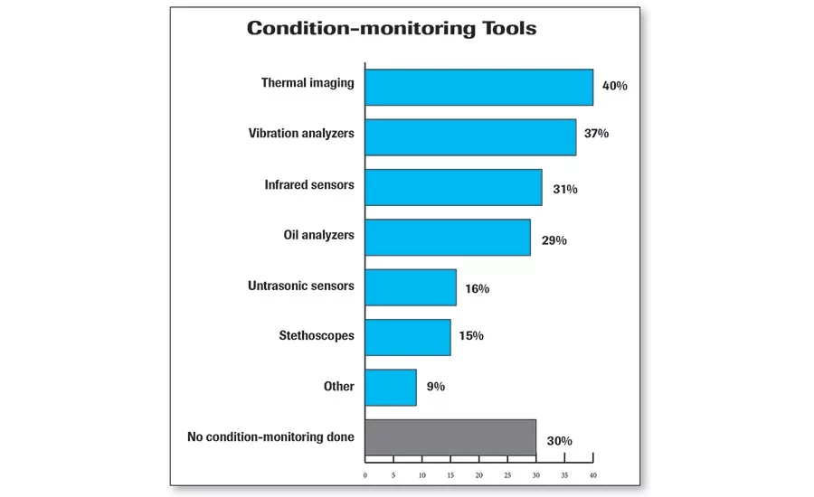 Only 1 percent of respondents say they use automated measuring and monitoring of parts and components to determine when to replace items. But interestingly, respondents see using more automation as offering the most opportunity for improvements to their parts and components management. So perhaps, this area of plant management is ripest for increased automation in the coming years.