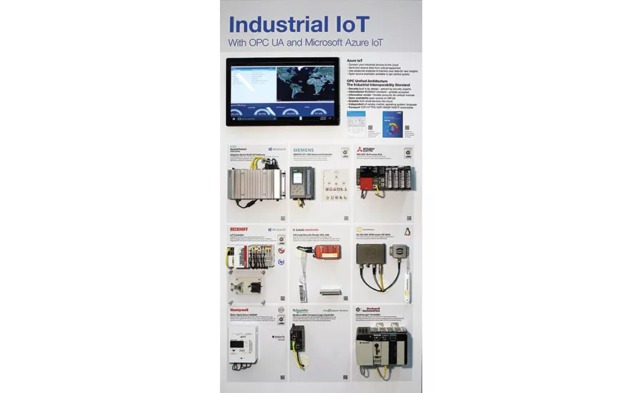 Microsoft and the OPC Foundation demonstrate their Azure Industrial IoT with OPC UA-enabled “walls” in their International Technology Centers. Participating industrial suppliers include Honeywell, Mitsubishi, Rockwell, Siemens, Schneider, Beckhoff, Harting and Leuze—all interoperable with the Microsoft “Connected Factory.”