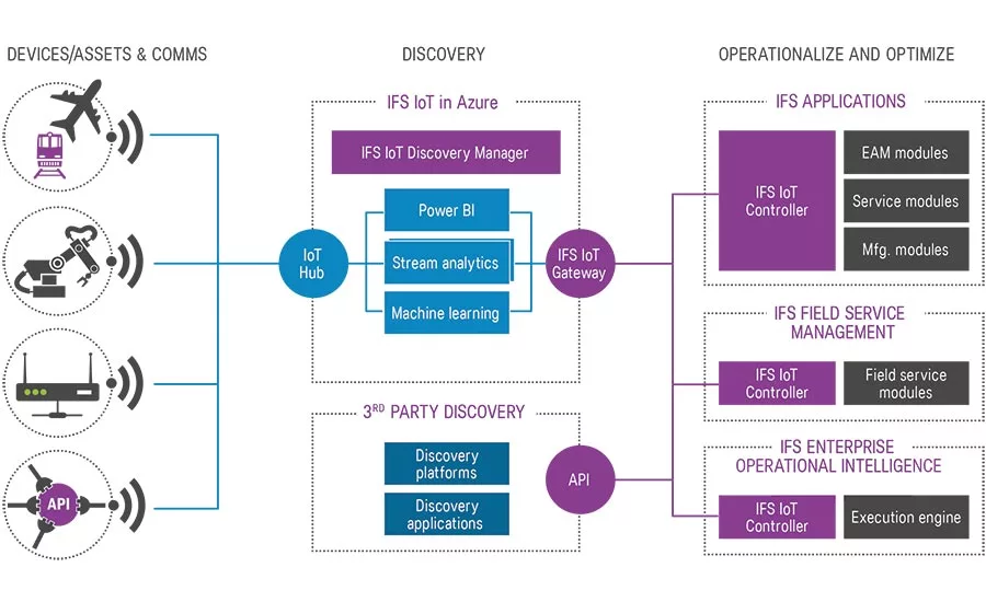IFS has released a set of software modules, called IoT Business Connector, and its architecture is crafted to take data from IIoT sources (devices/assets) and use it to improve business processes.