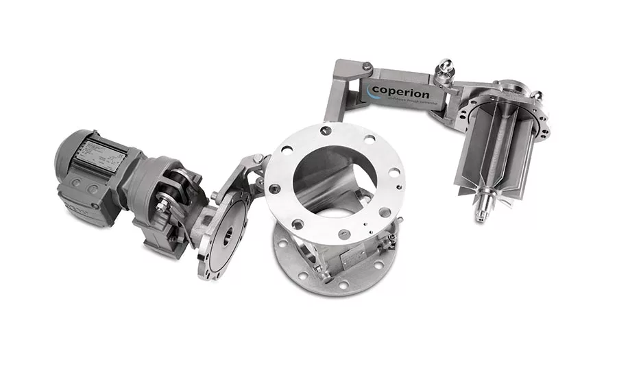The Coperion ZRD hygienic rotary valve is built for sanitary food applications where contamination is a concern, and frequent disassembly and cleaning are required. Designed according to EHEDG guidelines with pressure differentials up to 1.5 bar(g) (21 psi[g]) and temperatures up to 212°F, the valve has an explosion pressure shock proof rating of 10 bar(g) (145 psi[g]). The full-access extraction system fully supports the rotor as it is removed for cleaning. All product contact surfaces are constructed from DIN 1.4404 (AISI 316L) stainless steel.