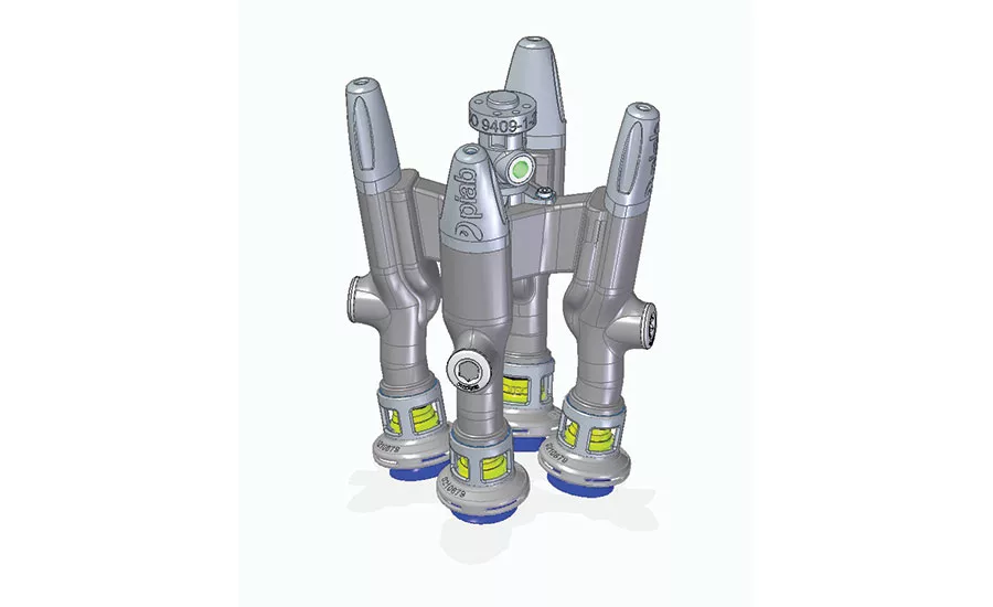 Created for making 3-D printed customized bag grippers, the Piab CBG software program allows robot/system integrators or end users to design/configure lightweight vacuum grippers for their bag/pouch handling robots. It comes with fully decentralized dust-proof vacuum generators, “bag-lip” suction cups with stabilizers around them, and an automatic quick-release function. When the gripper design is finished, it can be sent to Piab experts, who will confirm the design before production is started using the automatically generated 3-D print file.