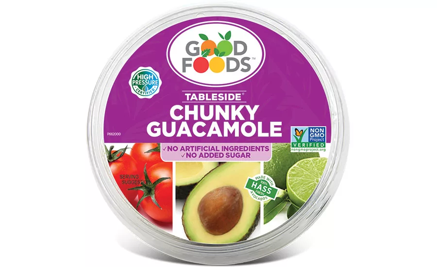 Good Foods guacamole and other dips are the first foods beyond beverages approved to advertise on the package that they’re made using high pressure processing (HPP).