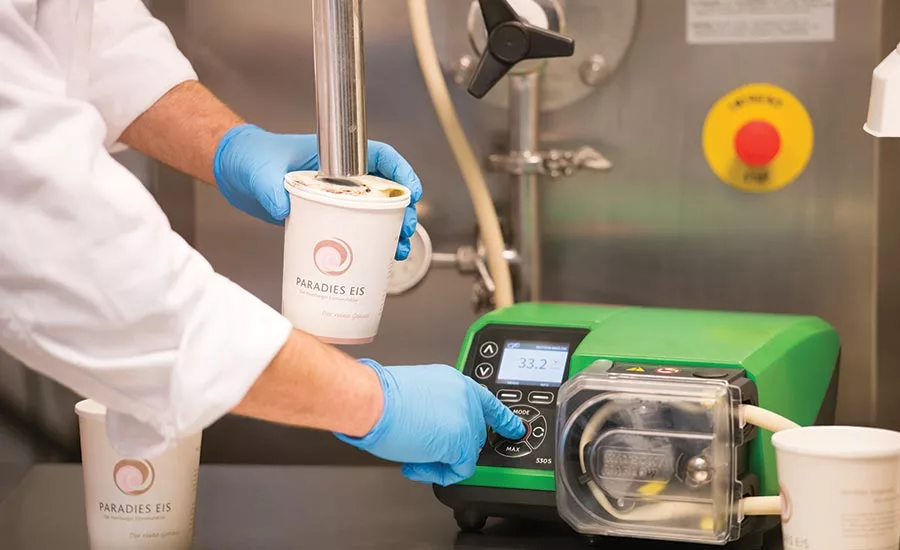 When Hamburg, Germany-based Paradies Eis needed a better way to dose hot chocolate sauce into ice cream, it turned to peristaltic pumps from Watson-Marlow Fluid Technology Group (WMFTG).