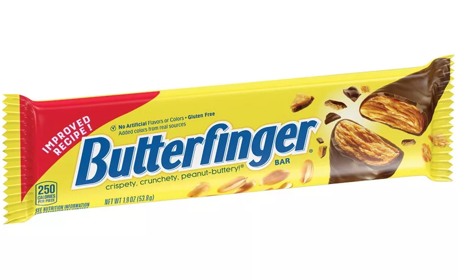 The wrapper for the updated Butterfinger hitting shelves this winter keeps the candy bars fresher so they don’t lost their “crispety, crunchety” experience. The package uses new double-layer, higher-quality material, Ferrara says.