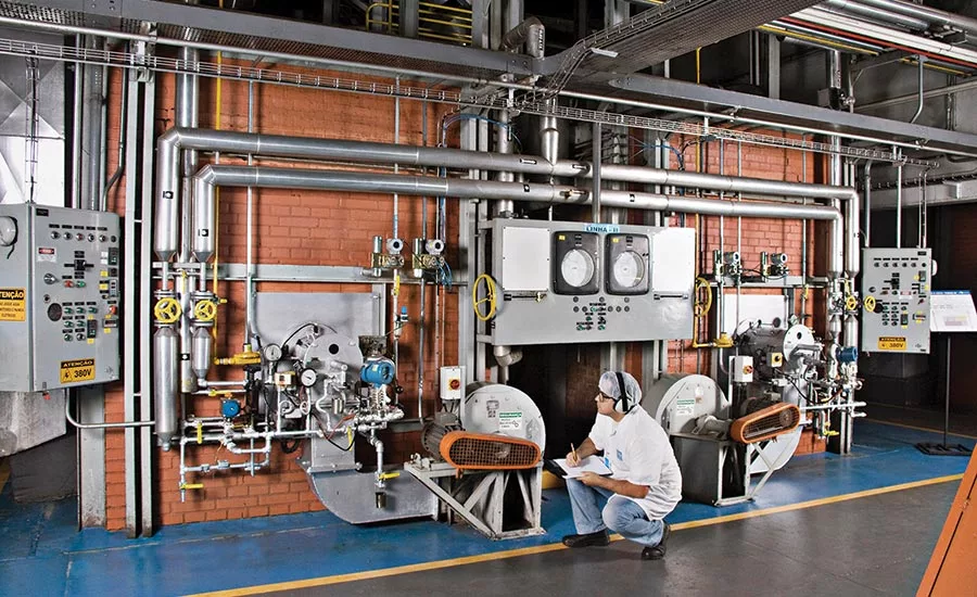 Operator observations recorded on paper are being replaced by modern electronic systems—note the use of sensors/transmitters present on piping in this boiler monitoring system. In addition, sensing devices on motors monitor bearing life and other motor parameters, providing actionable maintenance information.