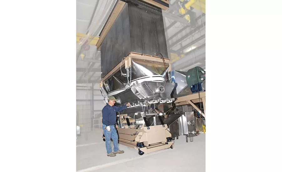 The Witte fluid bed drying system enables processors to recycle nitrogen, increasing its amount in the process air to 85 percent, eliminating the possibility of combustion. An integral baghouse dust collector set directly above the fluid bed drying zone creates a sealed system and allows entrapped fine particles to be dried in a fluidized bed processor. The drying system is intended for food products that generate combustible particulates less than 200 µm.