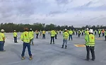 A Gray jobsite meeting while implementing social distancing. In cases where workers need to be in close proximity, supervisory approval is required.