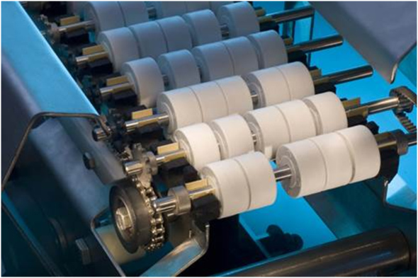 Traditional flat-belt conveyor systems are now giving way to solid-faced rollers for food filling and packaging applications. With no return loop (as found on flat-belt conveyors) there is little or no chance of carrying contamination throughout the system. Solid-faced roller surfaces and loose roller spacing reduce the possibility for particle collection. These features simplify and expedite the cleaning process—the roller spacing allows for easy access with hot water and air pressure.