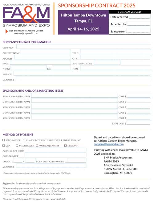 | Sponsor Showcase Audience Extension Program Sponsor acknowledgment and company showcase in post-event coverage in Food Engineering e-magazine and on FoodEngineering.com |