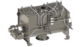 The AirCIP clean-in-place system sprays pulses of compressed air around the mixer interior to gently dislodge any residual material from the paddles or in the chamber.